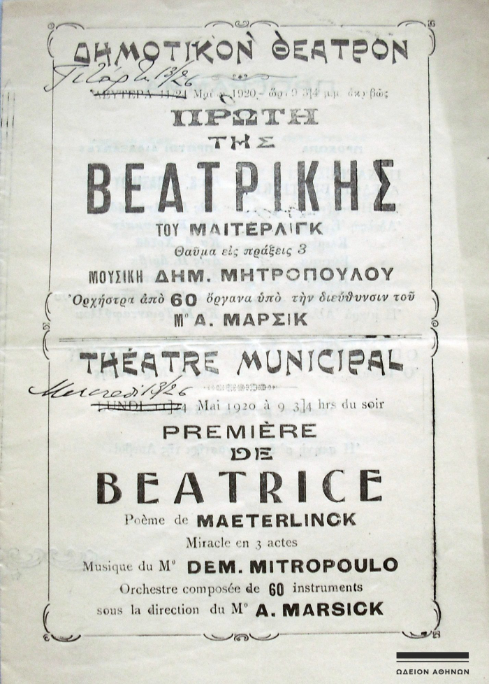 • Η μουσικοθεατρική ιστορία της Αθήνας, όπως αναδεικνύεται μέσω του Αρχείου του ωδείου
